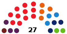 El principal órgano de administración de la ciudad es el Pleno del Ayuntamiento, esta cámara está formada por 27 concejales de 7 fuerzas políticas distintas. 11 de esos 27 concejales actúan como Concejales Delegados, es decir, teniendo una Concejalía a su cargo (Movilidad, Deporte, Seguridad...).[1]