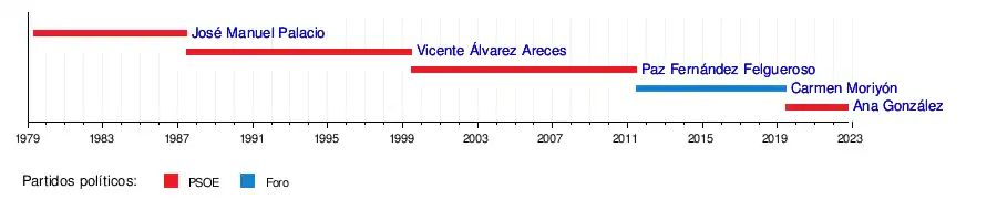 Gijón ha tenido una nutrida lista del alcaldes a lo largo de sus historia. El primer alcalde fue Juan Francisco Calderón en 1840, que estuvo en el cargo un mes. La actual alcaldesa es la número 101.[2] A continuación los alcaldes de la democracia a partir de la Transición: