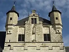La torre cívica o beffroi, en el centro del complejo, fue erigida en 1320[2] en estilo gótico, que también se quedó sin terminar, y que fue parcialmente demolido en 1526 para construir, en el lado norte, el palacio del Gran Consejo, y obtuvo una cobertura "provisional" que, sin embargo, permaneció hasta hoy.[3] Presenta elementos barrocos añadidos en el siglo XVII. En 1999 fue inscrito entre los campanarios municipales de Bélgica y Francia en la lista del Patrimonio de la Humanidad de la Unesco