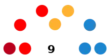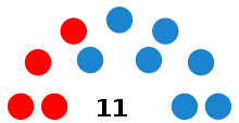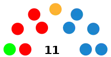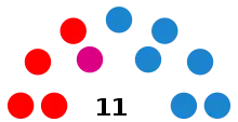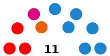 Distribución del Ayuntamiento tras las Elecciones municipales de 2011[10][11] | |||||