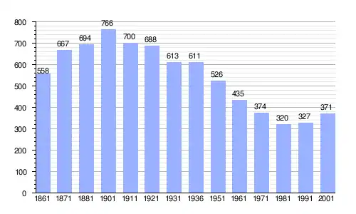 Gráfica de evolución demográfica de Azzano d'Asti entre 1861 y 2001 |