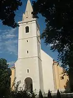 La iglesia estuvo dedicada al patricine de St Caliman, construido en el siglo XIII. Más tarde restaurado en estilo gótico (en 1408), y su torre fue reconstruida en 1658. Entre 1732 y 1757 todo el edificio de la iglesia fue renovada en estilo barroco. Los murales son de este periodo. La Columna de la Virgen María es del siglo XVIII.