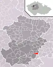 Se encuentra ubicada al noroeste de la región y de Praga, a poca distancia al norte del río Berounka —un afluente izquierdo del río Moldava—, y cerca de la frontera con la región de Ústí nad Labem.[1]