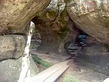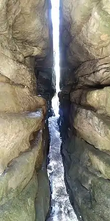 - Una ruta turística de varios cientos de metros de longitud discurre entre diversas formaciones rocosas como mazas, setas o pilares.[1] Algunas de las rocas tienen sus propios nombres, como Stołowy Głaz, Tunel, Kuchnia o Kurza Stopka.[1] En los lugares más estrechos, los turistas tienen que meterse por grietas en la roca de varias decenas de centímetros.[1]La roca llamada El Barco