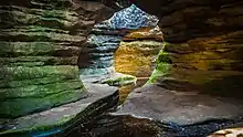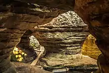 Błędne Skały (alemán: Wilde Löcher, español: Rocas Erróneas): un complejo de bloques de roca a una altura de 853 m sobre el nivel del mar, que forman un pintoresco laberinto (ciudad rocosa), situado en el suroeste de Polonia, en los Sudetes centrales, en los Montes Mesa.