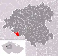 Se encuentra ubicada al noroeste de la región y de Praga, al sur del río Ohře (afluente del Elba), al norte del río Berounka (afluente del Moldava) y cerca de la frontera con las regiones de Pilsen y Ústí nad Labem.[1]