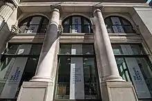 En la Quinta Avenida, los dos pisos más bajos tienen una columnata con columnas comprometidas de doble altura en el orden jónico, levantadas sobre pedestales y que sostienen un arquitrabe sencillo. Las columnas son en gran parte lisas, excepto las cuatro centrales, que son estriadas y flanquean un pórtico de entrada ligeramente saliente en los tres vanos centrales. Dentro de cada tramo de la columnata, las aberturas de las ventanas del primer y segundo piso están separadas por arquitrabes de piedra horizontales. Las ventanas del primer piso son grandes ventanales, mientras que las del segundo piso son ventana semicirculares de Diocleciano. En el pórtico de entrada, pequeños escalones de piedra conducen a las puertas de cada tramo, que se encuentran debajo de las marquesinas de vidrio de caparazón de tortuga.[3] Este pórtico de entrada conduce al Centro de Graduados de CUNY.[16]