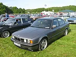 El primer BMW M5 con sus apenas 1,4 toneladas, llegó al mercado como la berlina más rápida del mundo. Solamente los Mercedes-AMG Black Hammer, basados en los Mercedes W124, eran capaces de adelantarlo, pero por aquel entonces, AMG era un preparador proscrito al que Mercedes le había prohibido incorporar la estrella de 3 puntas en sus creaciones, de modo que no se consideraba un coche de producción estrictamente hablando. Tampoco debería considerarse así al primer BMW M5, pues era hecho a mano en un departamento especial, pero éste al menos sí tenía el visto bueno de la marca.[11]