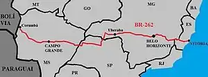 La BR-262, es una carretera brasileña que atraviesa los estados de Espírito Santo, Minas Gerais, São Paulo y Mato Grosso do Sul. Su recorrido se inicia en la ciudad de Vitória, capital de Espírito Santo, pasando por ciudades importantes como Belo Horizonte, Uberaba y Campo Grande hasta culminar junto a la frontera con Bolivia, en Corumbá, Mato Grosso do Sul.[1]