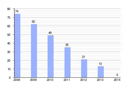 Gráfica de evolución de la deuda viva del ayuntamiento entre 2008 y 2014 |