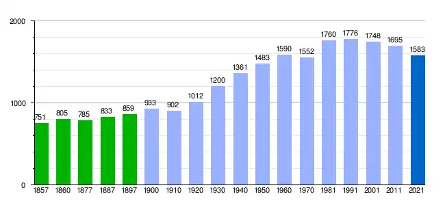 La estimación del INE da al municipio una población total de 1.583 habitantes en 2021.[2] Estas cifras supone un decrecimiento demográfico desde los máximos de 1991 (1.776 personas).