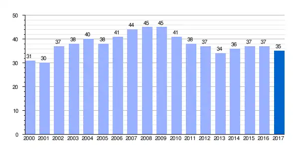 Gráfica de evolución demográfica de Bachicabo[2] entre 2000 y 2017 |
