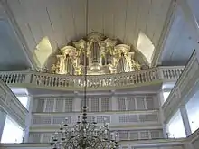 El constructor de órganos Johann Friedrich Wender de Mühlhausen construyó de 1699 a 1703 en la tercera grada de la iglesia un órgano con dos manuales y 21 pedales. Fue inspeccionado en junio de 1703 por Johann Sebastian Bach, por aquel entonces de 18 años de edad, quien fue contratado después para el puesto de organista en la iglesia, su primer empleo como organista. Se cree que es para tal efecto que escribió su Tocata y fuga en re menor, BWV 565.[1] Lo sucedió en 1707 su primo Johann Ernst Bach, quién mantuvo el puesto hasta 1728. El órgano fue cambiado y restaurado varias veces.[2][3] Se instaló una réplica del órgano en la iglesia de Pontaumur, Auvernia, el cual es utilizado también para un festival regional de Bach.