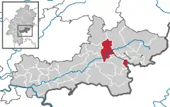 Se encuentra ubicado al sureste del estado, a poca distancia al norte del estado de Baviera y del río Meno, uno de los principales afluentes del Rin.