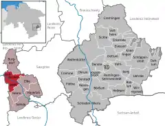 Se encuentra ubicado al sureste del estado, a poca distancia de la frontera con el estado de Sajonia-Anhalt.