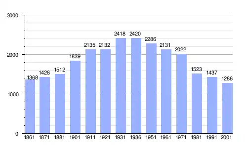 Gráfica de evolución demográfica de Bagaladi entre 1861 y 2001 |