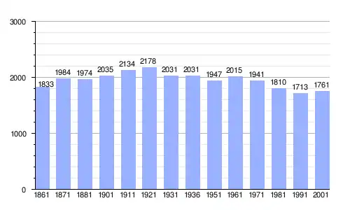 Gráfica de evolución demográfica de Bagnara di Romagna entre 1861 y 2001 |
