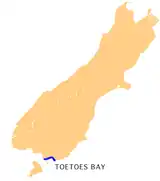 La bahía Toetoes es la más oriental de las tres grandes bahías que se encuentran en el estrecho Foveaux, en la costa de Southland, Nueva Zelanda. Las otras dos son la bahía Te Waewae y Oreti Beach. Con treinta kilómetros de largo, la bahía es el punto más meridional de la planicie Awarua, un área de suelos turbosos que se adentra hacia el centro de la isla unos 15 kilómetros. El punto más oriental de la bahía se encuentra cerca de Slope Point, el punto más meridional de la Isla Sur, justo donde comienza The Catlins.