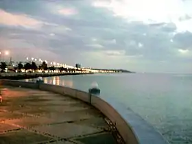 ![]() El malecón de San Francisco de Campeche (frente a la bahía de Campeche). | ||