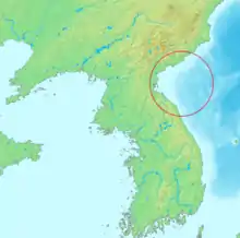 La bahía de Corea Oriental (en coreano, 동조선만, 동한만, Dongjoseon en Corea del Norte y Donghan en Corea del Sur) es una ensenada en la costa este de Corea del Norte y una extensión del mar del Japón,[1] ubicada entre las provincias de Hamgyong del Sur y Kangwon. Su extremo norte es Musu Dan, cerca del sitio de misiles Musudan que dio su nombre a los misiles Taepodong y Musudan de Corea del Norte. La caza de ballenas alguna vez fue común en la región, apuntando a especies como las ballenas de aleta.[2]