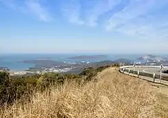 ![]() La bahía vista desde el horizonte de la ciudad de Ise. | ||