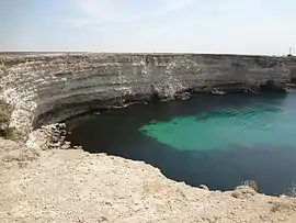 - Esta obra contiene una traducción derivada de «Karkinit Bay» de Wikipedia en inglés, publicada por sus editores bajo la Licencia de documentación libre de GNU y la Licencia Creative Commons Atribución-CompartirIgual 3.0 Unported.