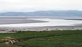 ![]() Bahía de Morecambe en marea baja desde Hest Bank, mirando hacia Grange-over-Sands. | ||