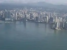 ![]() Vista aérea de la bahía de Panamá con la ciudad de Panamá al fondo. | ||