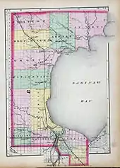 Alrededor de 1813, Louis Campau erigió un puesto comercial indio a lo largo del río Saginaw, lo que condujo al desarrollo de Saginaw City en 1816[5](que se combinó con la East Saginaw City en marzo de 1890 para formar Saginaw. La historia de los otros asentamientos del área de la bahía de Saginaw están relacionados con esto.