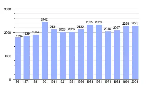 Gráfica de evolución demográfica de Baia e Latina entre 1861 y 2001 |