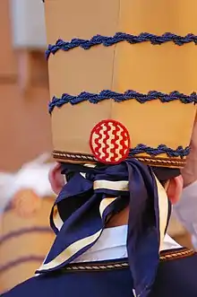 Los colores del vestuario simbolizan un baile marinero, con los colores de la arena y del mar. El gorro, que da nombre al baile, representa un barreño. Cada componente lleva aproximadamente unos 80 cascabeles.