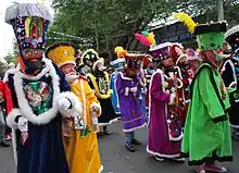 La danza de los Chinelos se deriva de las celebraciones del carnaval en lo que ahora es el centro sur de la Ciudad de México, Morelos y el Estado de México. Desde fiestas de Carnaval permiten el uso de máscaras para el anonimato y comportamientos que normalmente no son tolerados, una tradición que surgió de los indígenas para burlarse de la élite española y su forma de vestir a través de la danza.[12] La palabra "chinelos" se deriva de la palabra náhuatl zineloquie, que significa "disfrazado".[13] Los danzantes Chinelos usan máscaras imitando la piel blanca y la barba del español junto con un vestido elaborado y guantes.[12] Son los danzantes de carnaval más conocidos en México y en Morelos tienen la mayoría de los grupos.[13] Los danzantes Chinelo ahora son un símbolo del estado de Morelos, con la tradición cada vez mayor con más ciudades teniendo grupos de danza y es posible ver grupos bailando en momentos diferentes a Carnavales. Incluso es posible contratar a danzantes Chinelos para ocasiones especiales.[12]