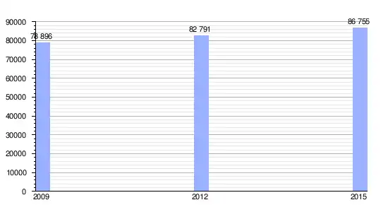 Gráfica de evolución demográfica de Bainet entre 2009 y 2015 |
