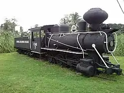 ![]() Locomotora de vapor de vía estrecha fabricada por Baldwin en los EE. UU. en exhibición frente al ingenio azucarero Central Azucarera de Bais y anteriormente utilizada para transportar vagones cargados de caña de azúcar en los campos de la ciudad de Bais en Filipinas