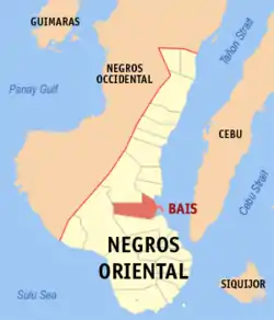Bais es una ciudad filipina de segunda clase en la provincia de Negros Oriental. Según el censo de 2010, posee una población de 74.722 habitantes. Se encuentra situada a 44,7 kilómetros de la capital provincial, Dumaguete y posee un área total de 316,90 kilómetros cuadrados.