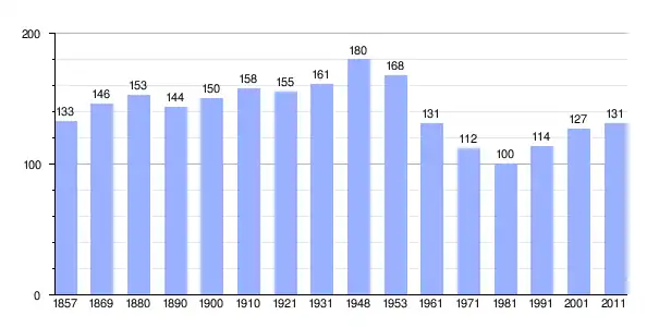 Gráfica de población de Bajčići 1857-2011 |