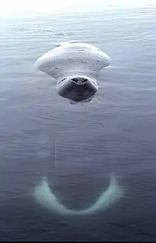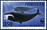 La ballena de Groenlandia, también conocida como ballena boreal o ballena cabeza de arco (Balaena mysticetus), es una especie de cetáceo misticeto de la familia Balaenidae.[2] Es la única especie viviente de su género.[2]Posee un cuerpo robusto, sin la presencia de aleta dorsal (características propias de la familia). Puede crecer hasta 18 metros de longitud, con un peso máximo de 100 toneladas. Habita en las aguas árticas y subárticas, a diferencia de otras ballenas que migran para alimentarse o reproducirse. Posee una enorme boca con multitud de barbas (hasta 600 o más que pueden medir unos 3 m de largo cada una).