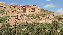 La arquitectura es típicamente bereber. Los materiales utilizados son de piedra pulida y se unieron con un mortero local con troncos de palmeras datileras.[5]