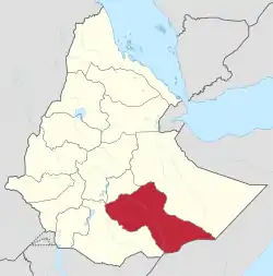 Limitaba al norte con las provincias de Hararge y Arsi; al este son Somalia y Hararge; al sur con Somalia y con la provincia de Sidamo; y al oeste con Sidamo.