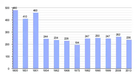 Los datos demográficos contemplados en este gráfico de la comuna de Balesmes-sur-Orne[4] se han cogido de 1800 a 1999 de la página francesa EHESS/Cassini, y los demás datos de la página del INSEE.[5]