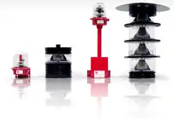 - Balizas para señalizar líneas de alta tensión. Estas balizas se colocan a tres niveles de altura de la estructura: alto, medio, y bajo