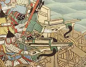 Las modificaciones de la chu-ko-nu incluyeron ballestas de sitio, con flechas más grandes y mayor potencia, lo que requirió que dos hombres la operaran: un apuntador y un operador.