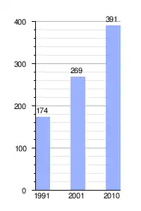 Gráfica de evolución demográfica de Balneario Monje entre 1991 y 2010 |