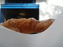 Puede ser hecho en casa o comprado en tiendas de comida rápida. Se prepara con una pasta de harina frita en aceite y se come espolvoreado con azúcar.