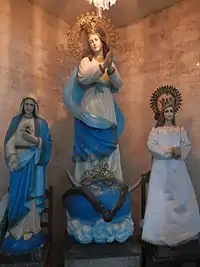 La imagen de la Inmaculada Concepción, patrona de San Simón, desapareció del altar de la iglesia, siendo descubierta en las ramas altas de un árbol situado en las inmediaciones de la actual iglesia católica de Namagbagan.[4] El nombre de Baní es el del árbol donde se encontró esta imagen (Millettia pinnata).[5] La imagen fure llevada a la iglesia Namagbagan desapareciendo misteriosamente en varias ocasiones para regresar al lugar de la aparición. Los vecinos abandonaron sus hogares para esteblecerse en el actual emplazamiento, que recibe el nombre de Baní por el árbol donde se encontró la imagen de la Patrona.