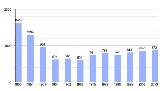 Gráfica de evolución demográfica de Banassac entre 1800 y 2013 |