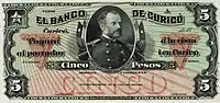 ![]() Dibujo de la casa matriz del Banco de Curicó en el billete de 20 pesos emitido por dicha institución. | ||||
