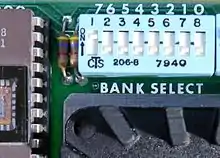 - Garland, Harry (1977). «Design Innovations in Personal Computers». Computer (IEEE Computer Society) 10 (3): 25. doi:10.1109/c-m.1977.217669. «An eight-position DIP switch on such cards is used to select one (or more) of eight banks of memory ».