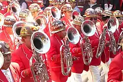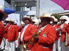 La banda suele llevan un uniforme rojo[9] que incluía un sombrero, que fue reemplazado desde 2014[5] por un casco minero[10] profusamente ornamentado, que hace referencia a su origen en el Departamento de Oruro, una región de tradición minera[11] centenaria.