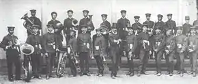Esta Banda, que era de tipo militar, fue la primera que se conoció en Antioquia. Mostraba muy poca diversidad en los instrumentos y contaba con pocos ejecutantes. Operó por cierto tiempo en la ciudad de Rionegro, que en ese tiempo se había transformado, por su entorno y clima, en el principal foco de enseñanza y preparación de los grupos militares de toda la policía.